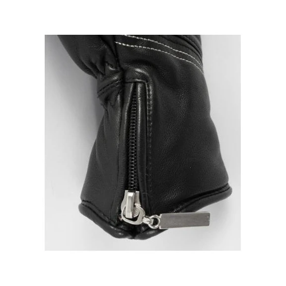 Este guante de cuero elegante, suave y extra cálido presenta algunos diseños de costura hechos a mano muy delicados y una elegante entrada de cremallera.